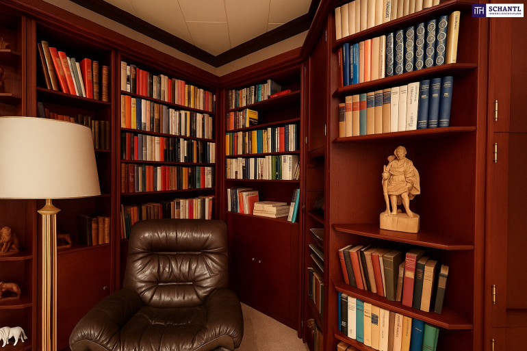 Eine eindrucksvolle Bibliothek/Arbeitszimmer – Rückzugsort für Ruhe und Inspiration: 75,63 m²