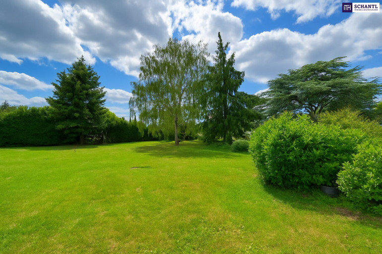 Der weitläufige, liebevoll gepflegte Garten mit rund 1.487 m² Grünfläche bietet Privatsphäre, Ruhe und Raum für Entfaltung.