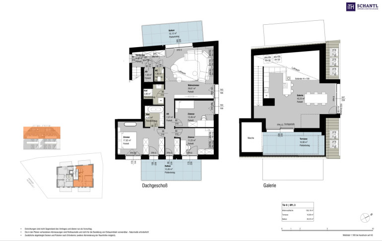 Wohnfläche: ca. 138,19m² + 1.Balkon: ca. 15,13m² + 2.Balkon: ca. 15,09m² + Terrasse: ca. 16,90m² + Kellerabteil