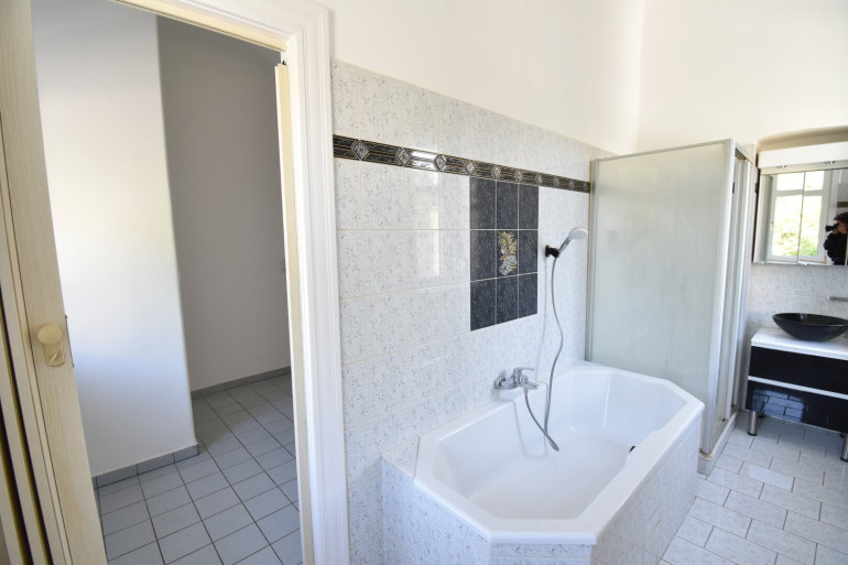 - Badezimmer mit Dusche & Badewanne, Waschmaschinenanschluss vorhanden