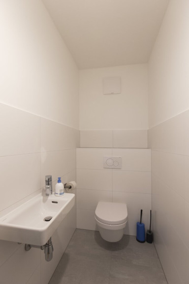 Es gibt zwei Bäder, ein Duschbad sowie ein Bad mit Badewanne und integrierter Toilette. Weiters steht eine zweite separate Toilette zur Verfügung.