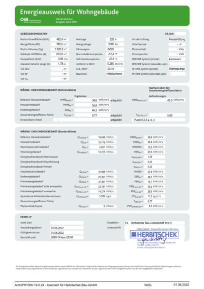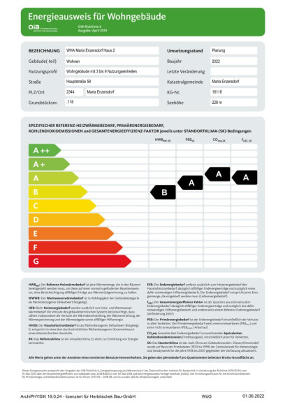 | Heizwärmebedarf: | B 34,60 kWh/m²a |