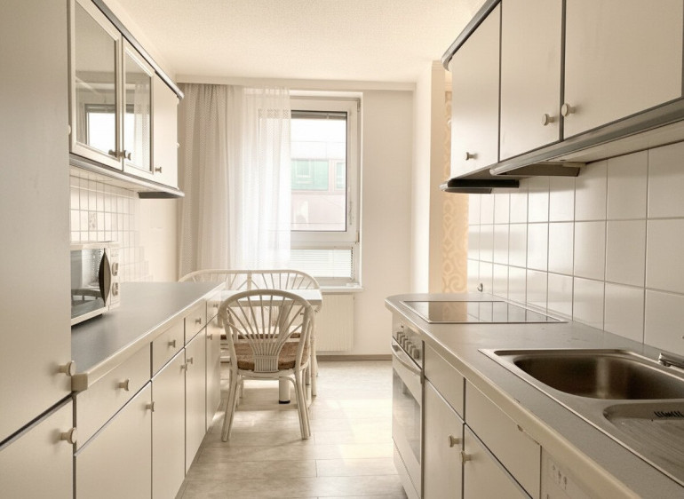 Die Wohnung wird unmöbliert (bis auf die Küche) verkauft.