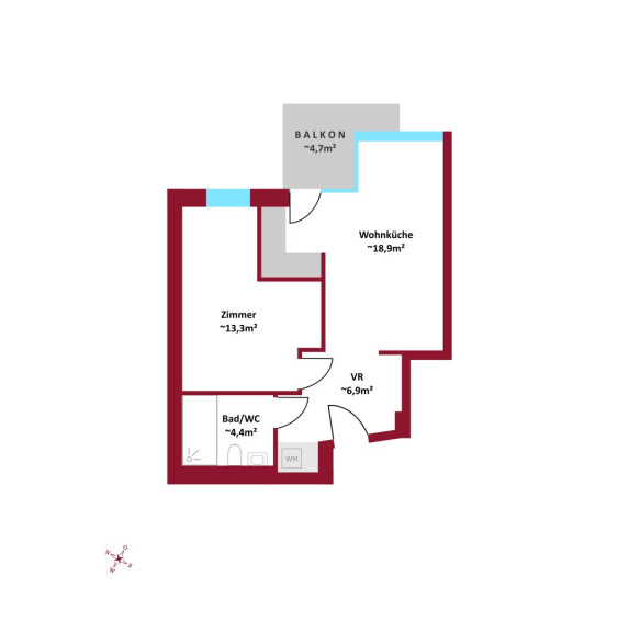 - Bad mit Dusche und WC: ca. 4,35 m²