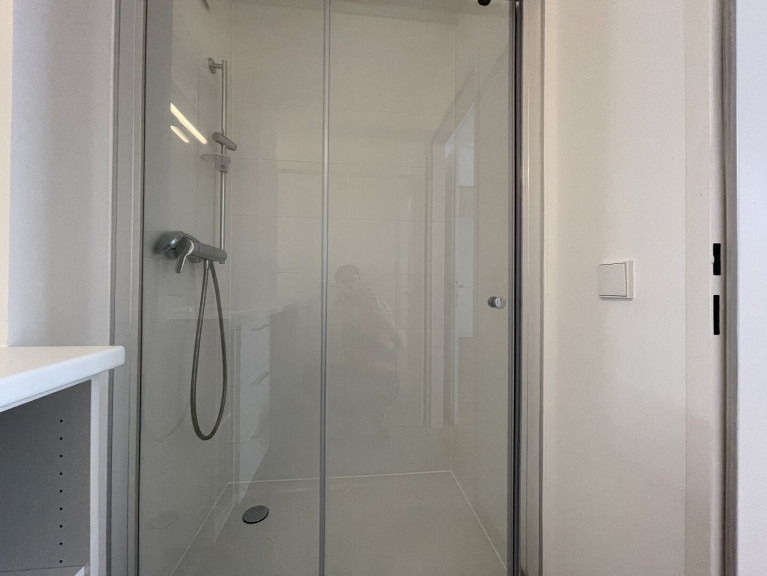 - Badezimmer, mit Dusche und Waschmaschinenanschluss, Fenster
