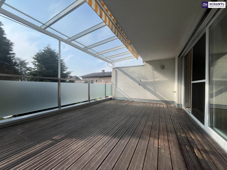ein Highlight der Wohnung ist die großzügige Terrasse, mit ungefähr 25 m² sie bietet genug Platz für gemütliche Abende im Freien, BBQs mit Freunden oder entspannte Stunden mit Blick ins Grüne, der ungestörte, idyllische Ausblick auf die umliegende Natur ist eine wahre Oase der Ruhe