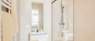 - Badezimmer mit Walk-Inn Dusche, Waschbecken und Waschmaschinenanschluss