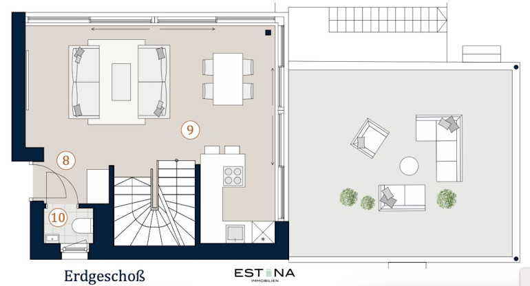 - lichtdurchflutende Wohnküche mit Zugang zur Terrasse und Garten