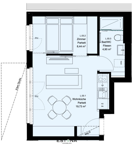 - Einige Bilder wurden mittels Virtual Staging aufbereitet, um das Einrichtungspotenzial der Räume zu visualisieren. Die Möblierung ist nicht im Kaufpreis enthalten. -