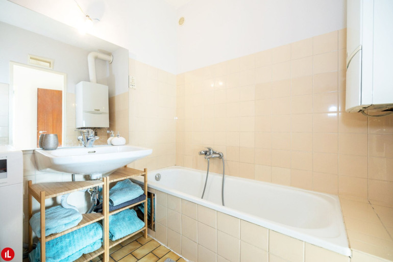 * Badezimmer mit Wanne und Waschmaschinenanschluss