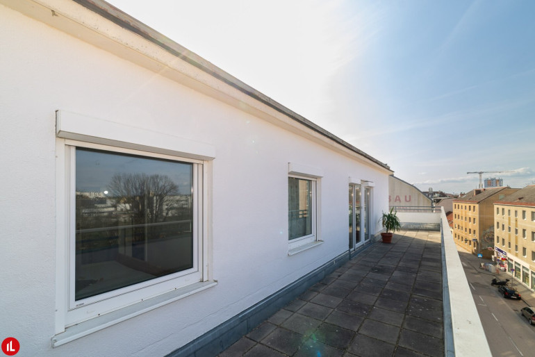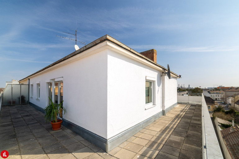 Diese Dachgeschosswohnung befindet sich in einem soliden Ziegelbau und überzeugt vor allem durch ihre außergewöhnliche Außenfläche: eine großzügige Dachterrasse mit rund 62,50 m² und Ost-, Süd- und Westausrichtung. Dadurch genießen Sie den ganzen Tag Sonne sowie einen uneinsichtigen Außenbereich.