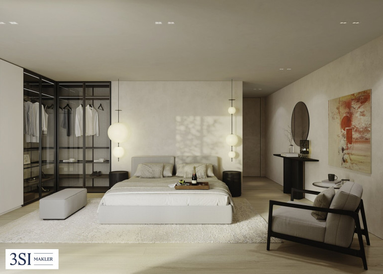 Im Zusammenspiel klarer Linien und präzise gesetzter Details entsteht die architektonische Qualität von THE SUPERIOR. Jede Entscheidung folgt einem übergeordneten Prinzip: Reduktion, Dauerhaftigkeit und Materialität. Die Innenräume überzeugen durch sorgfältig ausgewählte Oberflächen, die Ruhe ausstrahlen und zugleich Tiefe entwickeln. Eichenparkett bringt natürliche Wärme in die Räume, während großformatige Verglasungen Licht und Weitblick selbstverständlich integrieren. Auch in den Bädern setzt sich diese Klarheit fort. Hochwertiges Feinsteinzeug trifft auf fein ausgeführte Sanitärobjekte und schafft eine Atmosphäre, die zurückhaltend und zugleich anspruchsvoll wirkt. Technik versteht sich hier als diskrete Unterstützung. Split-Kühlgeräte sorgen für angenehme Temperaturen, ohne in Erscheinung zu treten. Elektrisch gesteuerte Beschattungselemente regulieren Licht und Atmosphäre im Hintergrund, während die Video-Gegensprechanlage Sicherheit und Privatsphäre gewährleistet.