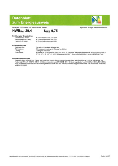 | Heizwärmebedarf: | 29,40 kWh/m²a |