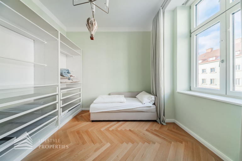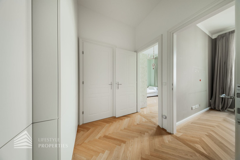 Diese helle ca. 85 m² große Wohnung liegt im 2. Liftstock eines im Jahre 1893 erbauten Altbaus. Die historische Gebäudefront wurde 2020 umfassend restauriert, wobei weite Teile des Hauses unter Berücksichtigung des traditionellen Gebäudekerns zur Gänze neu errichtet wurden. Zudem wurde der bestehende Altbau um einen Neubau erweitert. 15 Wohnungen im Altbau inklusive eines Penthouses und 101 Wohnungen im Neubau. Ein prestigeträchtiger gemeinsamer Eingangsbereich verbindet den vorderen „alten“ mit dem hinteren „neuen“ Teil des Hauses.