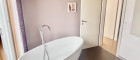 Die Einbauküche (italienische Designer Küche) ist bestens ausgestattet und lädt zum gemeinsamen Kochen und Verweilen ein. Das Badezimmer überzeugt mit Tageslicht, einer freistehenden Badewanne und einem durchdachten Design, das Entspannung garantiert.
