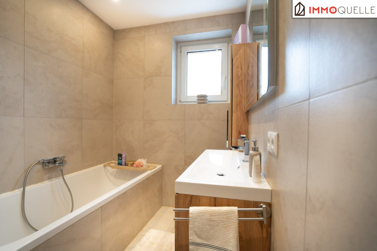 Ergänzt wird die Wohnung durch einen praktischen Abstellraum sowie ein Badezimmer mit Fenster und ein separates WC, wodurch die Wohnung auch im Alltag besonders angenehm und funktional bleibt.