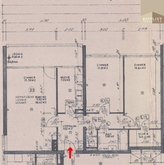 Eine Wohnung mit sehr guter Raumaufteilung, viel Licht und einer besonders schönen Loggia, mit Ausblick auf die Weinberger.