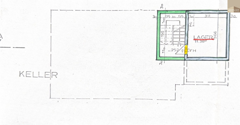 Im Kellergeschoss besteht nur aus einem Raum in diesem sich der alte inaktive Öltank befindet. Weitere Kellerräume sind nicht vorhanden.