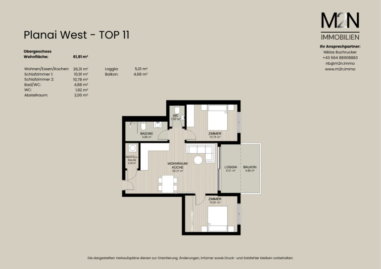 Der offen gestaltete Wohn-, Ess- und Küchenbereich mit über 26 m² bildet das Herzstück der Wohnung. Die klare Raumstruktur ermöglicht eine flexible Möblierung und schafft eine angenehme Atmosphäre für den Alltag ebenso wie für gesellige Abende.
