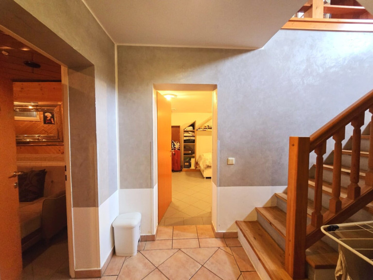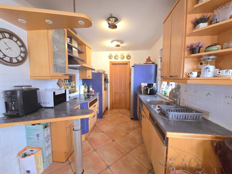 Parkett, Fliesen, Gas, Zentralheizung, Einbauküche, Wohnküche / offene Küche, Bad mit Fenster, Badewanne, Dusche, Garage, Parkplatz, Sauna
