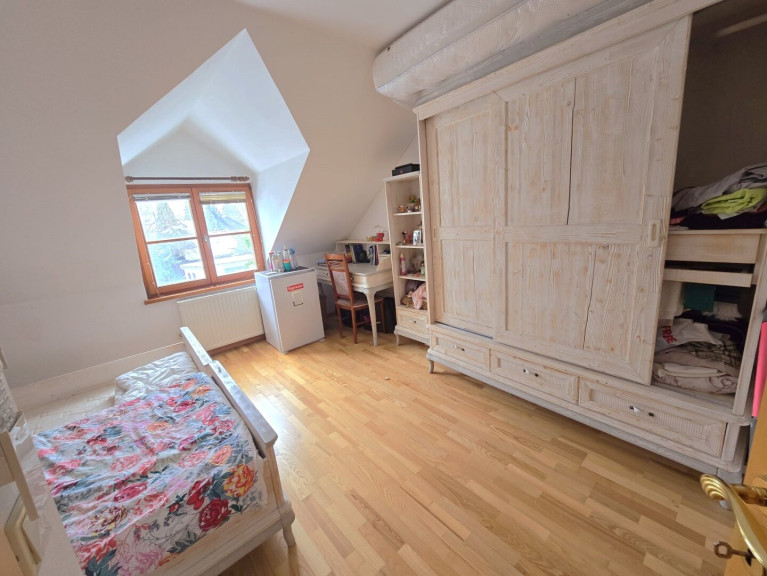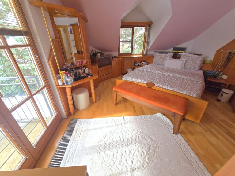 Dieses 1980 in Holzriegelbauweise errichtete Einfamilienhaus in Gerasdorf bei Wien, nur wenige hundert Meter vom 21. Bezirk entfernt, besticht durch seine durchdachte Architektur und ein außergewöhnliches Platzangebot.