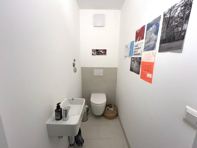 Beim Betreten der Wohnung gelangen Sie in den Vorraum, von dem aus alle Räume zentral erreichbar sind. Direkt zu Beginn befinden sich das separate WC sowie das Badezimmer, ausgestattet mit Badewanne, Waschmaschinenanschluss und Handtuchheizkörper.