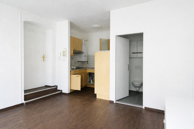 Die Wohnung befindet sich in einem gepflegten Wohnhaus (Altbau) und verfügt derzeit über zwei großzügige Räume. Aufgrund des gut nutzbaren Grundrisses besteht die Möglichkeit, eine klare und funktionale Raumaufteilung mit separatem Vorbereich/Garderobe, Wohnbereich sowie einem großen, eigenständigen Schlafzimmer zu realisieren. Dies bietet attraktives Potenzial für eine zeitgemäße Neugestaltung.
