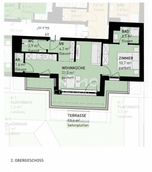 - Jede Wohnung mit privater Freifläche (Loggia, Balkon, Terrasse, Eigengarten)