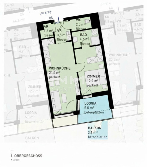 - Jede Wohnung mit privater Freifläche (Loggia, Balkon, Terrasse, Eigengarten)