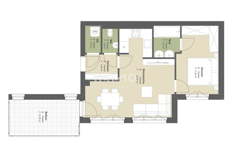 Und das Beste: Böden, Fliesen und Feinsteinzeug dürfen Sie selbst auswählen – so wird aus dem modernen Grundriss Ihre ganz individuelle Wohlfühlwohnung.