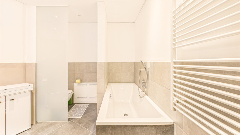 Neben dem Schlafzimmer steht ein weiteres Zimmer zur Verfügung, das sich flexibel als zweites Schlafzimmer, Büro oder Hobbyraum eignet. Das Badezimmer präsentiert sich in sehr gepflegtem Zustand und ist mit Badewanne und Dusche ausgestattet.