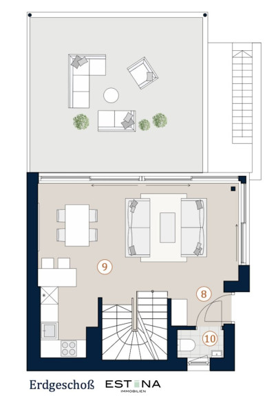- lichtdurchflutende Wohnküche mit Zugang zur Terrasse und Garten