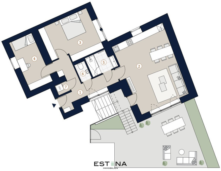 - Wohnküche mit Zugang zum Garten und Terrasse