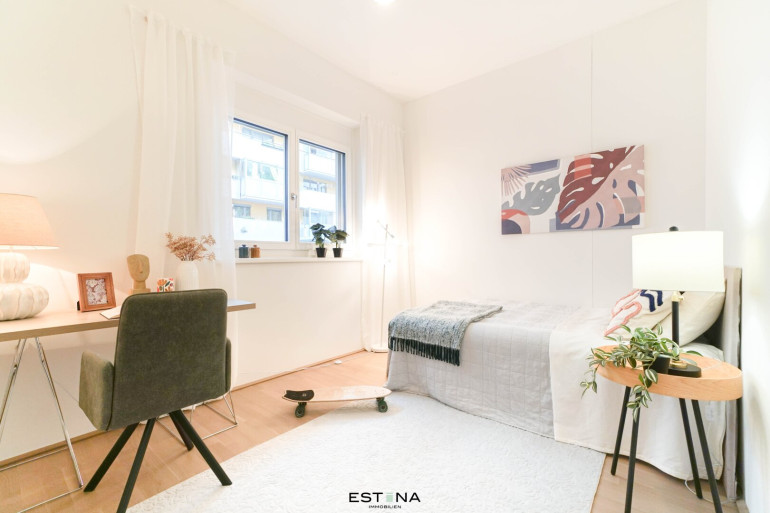 Die angeführten Fotos sind Beispielbilder einer bereits fertiggestellten Wohnung oder KI Visualisierung im Projekt.