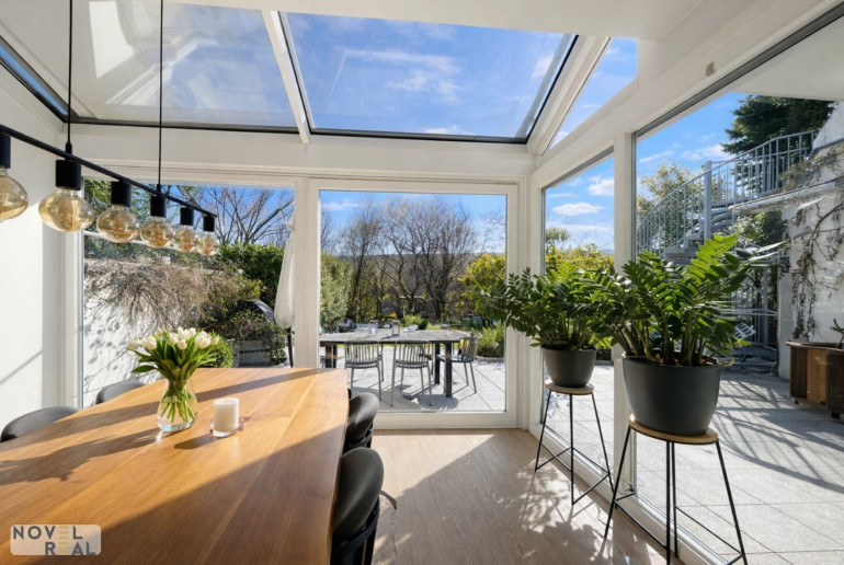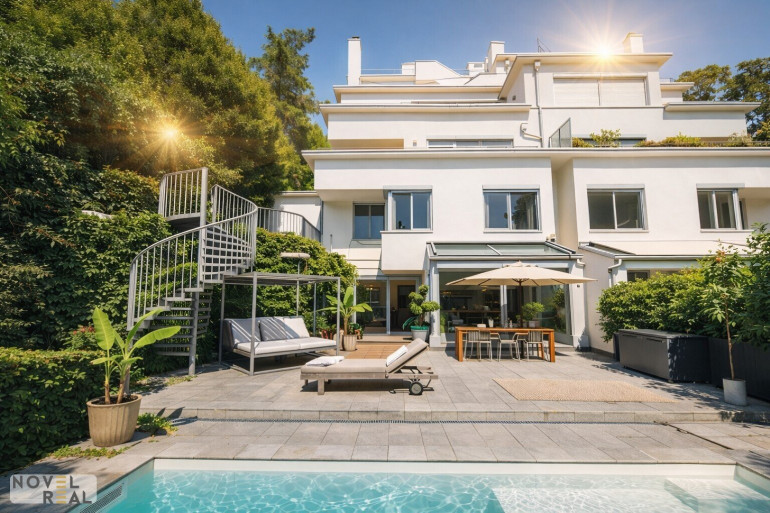 Zum Verkauf gelangt eine sonnige Traumwohnung mit perfekt durchdachtem Raumkonzept und exklusiver Ausstattung. Die südseitig ausgerichtete Maisonette befindet sich in einer kleinen Wohnanlage mit nur 7 Wohnungen und ist malerisch nahe dem Wienerwald gelegen. Auf 166 m2 Wohnfläche bieten sich Ihnen auf der ersten Ebene ein großzügiger Wohn-/Essbereich mit offenem Kamin sowie eine hochwertige Einbauküche mit Markengeräten. Weite Fensterfronten mit Blick auf die großzügige Terrasse mit modernem Pool sowie den einladenden Garten, lassen viel Licht herein und vermitteln ein beeindruckendes Raumgefühl. Auf der zweiten Ebene befinden sich 4 zentral begehbare Schlafzimmer und 2 exquisit ausgestattete Badezimmer. Perfekt eingeplante Einbauschränke in Maßarbeit bieten viel Stauraum. Die Wohnung befindet sich in ausgezeichnetem Zustand. Die Wohnung wurde komplett renoviert 2022/2023, ebenso wurde der Garten und der Pool modernisiert.