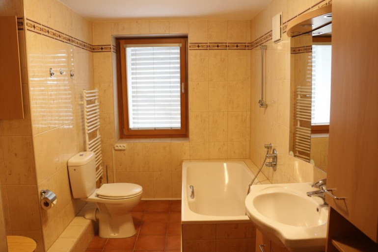 Fliesen, Parkettboden, Öl, Zentralheizung, Einbauküche, Wohnküche / offene Küche, Personenaufzug, Bad mit Fenster, Badewanne, Dusche, Carport
