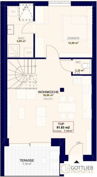 + ca. 7,18 m² Südterrasse