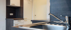 - Vollausgestattete Küche: Eine Glas-Schiebetür führt in die moderne Küche mit Kühlschrank und Gefrierfach, Backrohr, Ceranfeld, Dunstabzug, Spüle, Geschirrspüler und attraktiven Sitz- und Essmöglichkeiten, perfekt beleuchtet mit modernen Einbau-Spots.