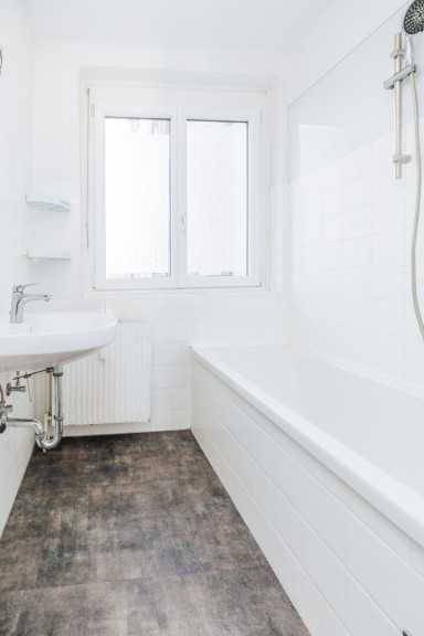 Die moderne Einbauküche lässt keine Wünsche offen: ausgestattet mit Ceranfeld, Backrohr, Kühlschrank und Gefrierschrank ist sie das perfekte Reich für Hobbyköche. Direkt von hier gelangen Sie auf den ruhigen, innenhofseitigen Balkon – ideal, um den Morgenkaffee in entspannter Atmosphäre zu genießen. - Modernes Badezimmer mit Badewanne