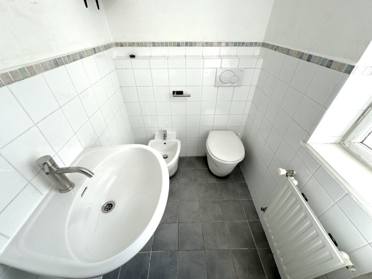 - Bad mit Waschbecken, Bidet und WC (mit Fenster)