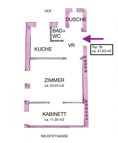 Diese entzückende 2-Zimmer-Wohnung befindet sich im 3. Liftstock in einem Altbauhaus in der Neustiftgasse im 7. Bezirk.