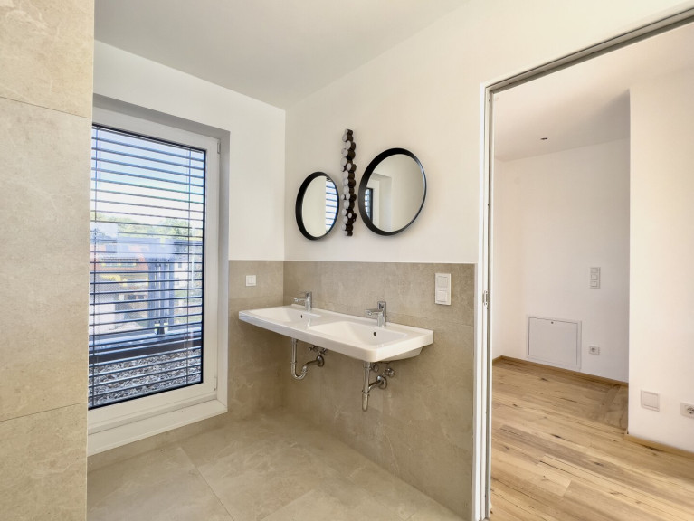 - Großformatige, elegante Fliesen in den Nassräumen