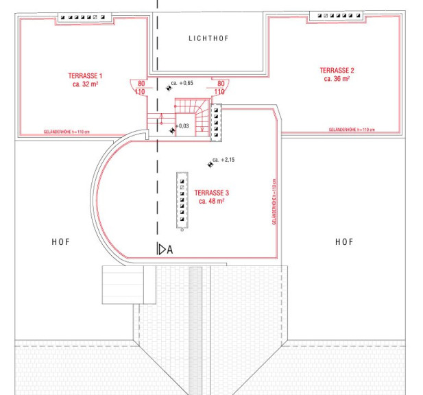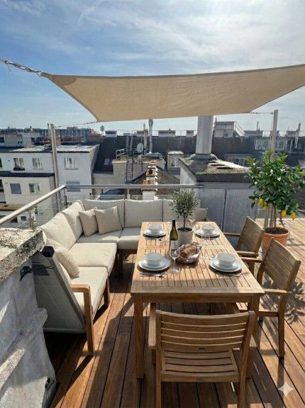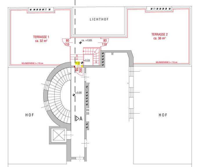 116 m² Rooftop-Potential: Eine Terrasse über zwei Ebenen, die durch eine vorliegende Machbarkeitsstudie bereits den Weg zu Ihrer privaten Sky-Lounge geebnet hat.
