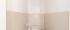 Das helle Schlafzimmer, das Badezimmer mit Badewanne und Waschmaschinenanschluss, die separate Toilette sowie ein praktischer Abstellraum sind bequem vom großzügigen Vorraum aus erreichbar.