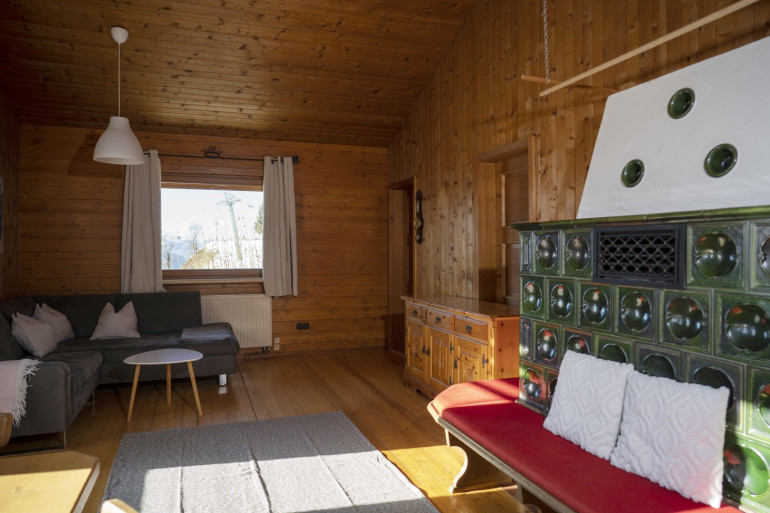 Ein traditioneller Kachelofen sorgt für wohlige Wärme und uriges Hüttenflair. Zusätzlich ist eine Zentralheizung vorhanden, die für zeitgemäßen Komfort sorgt.