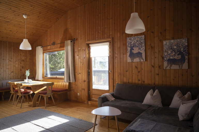 Die Berghütte überzeugt durch eine durchdachte Raumaufteilung und eine behagliche Atmosphäre: