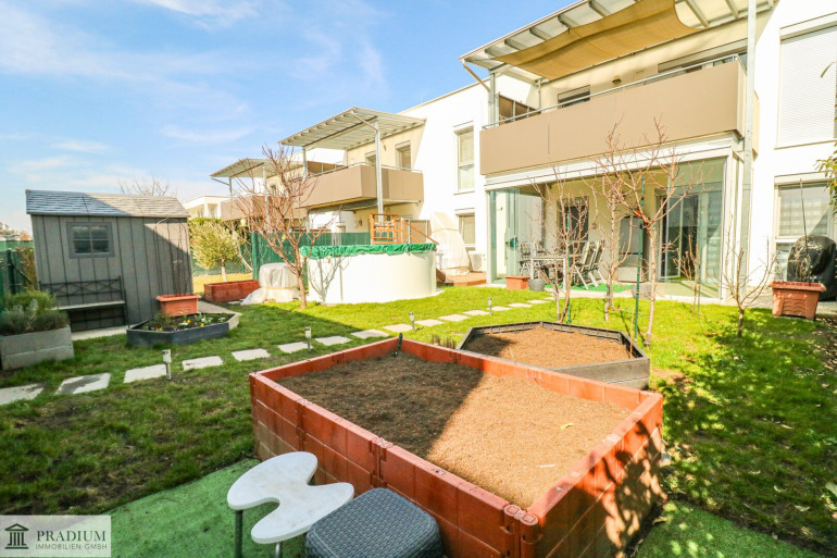 Helle Neubau-Gartenwohnung mit großem Garten und zwei Parkplätzen in Lanzendorf