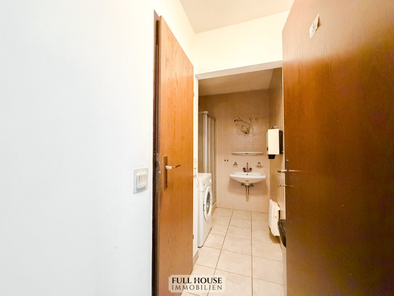 Links vom Eingangsbereich befindet sich das Badezimmer mit ca. 3,09 m², welches kompakt und funktional gestaltet ist. Das WC ist separat ausgeführt und verfügt über eine Fläche von rund 0,96 m².