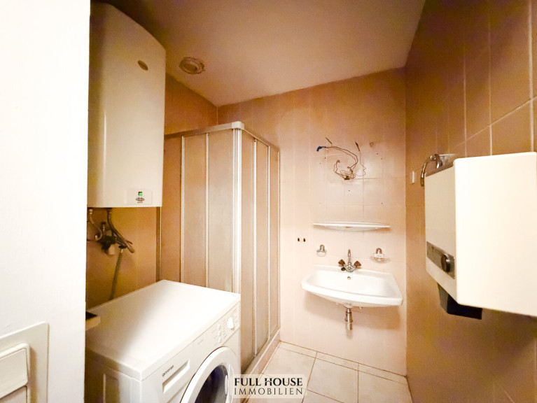 Fliesen, Laminatboden, Elektro, Gas, Zentralheizung, Einbauküche, Dusche, Parkplatz