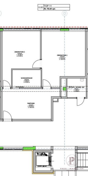 Die Top 11 im Obergeschoss des Ärztezentrums in Feldkirchen bei Graz bietet eine vielseitig nutzbare Praxis-, Ordinationseinheit mit ca. 79 m². Die zentrale Lage nahe dem Ortszentrum sorgt für eine gute Erreichbarkeit für Kunden, Patienten und Mitarbeiter. Besucherparkplätze stehen direkt beim Gebäude frei zur Verfügung.
